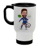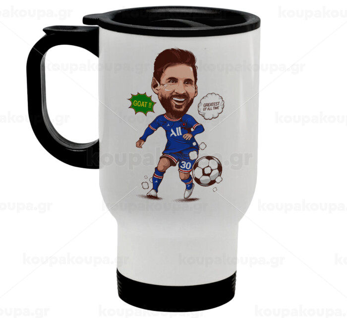 Lionel Messi drawing, Κούπα ταξιδιού ανοξείδωτη με καπάκι, διπλού τοιχώματος (θερμό) λευκή 450ml