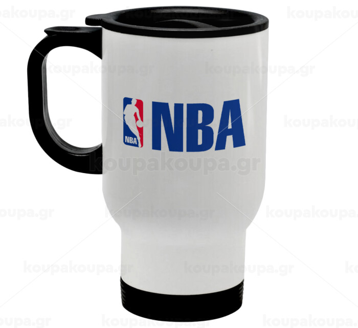 NBA, Κούπα ταξιδιού ανοξείδωτη με καπάκι, διπλού τοιχώματος (θερμό) λευκή 450ml