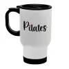 Pilates love, Κούπα ταξιδιού ανοξείδωτη με καπάκι, διπλού τοιχώματος (θερμό) λευκή 450ml