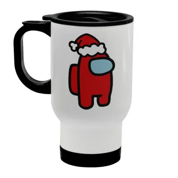 Among US Santa, Κούπα ταξιδιού ανοξείδωτη με καπάκι, διπλού τοιχώματος (θερμό) λευκή 450ml