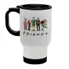 Christmas FRIENDS, Κούπα ταξιδιού ανοξείδωτη με καπάκι, διπλού τοιχώματος (θερμό) λευκή 450ml