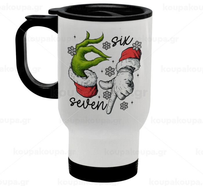 Christmas Meme SIX SEVEN (67), Κούπα ταξιδιού ανοξείδωτη με καπάκι, διπλού τοιχώματος (θερμό) λευκή 450ml