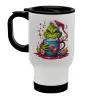 Giggling Grinchy Galore, Κούπα ταξιδιού ανοξείδωτη με καπάκι, διπλού τοιχώματος (θερμό) λευκή 450ml