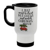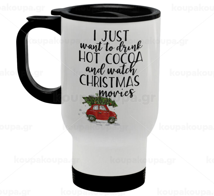 I just want to drink hot cocoa and watch christmas movies mini cooper, Κούπα ταξιδιού ανοξείδωτη με καπάκι, διπλού τοιχώματος (θερμό) λευκή 450ml