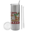 Let's get baked, Κούπα ταξιδιού ανοξείδωτη με καπάκι, διπλού τοιχώματος (θερμό) λευκή 450ml