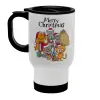 Merry Christmas Cats, Κούπα ταξιδιού ανοξείδωτη με καπάκι, διπλού τοιχώματος (θερμό) λευκή 450ml