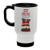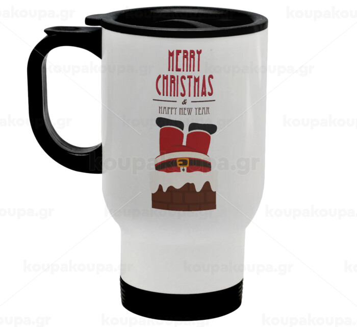 Merry christmas chimney, Κούπα ταξιδιού ανοξείδωτη με καπάκι, διπλού τοιχώματος (θερμό) λευκή 450ml
