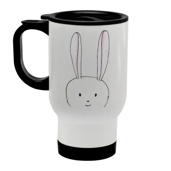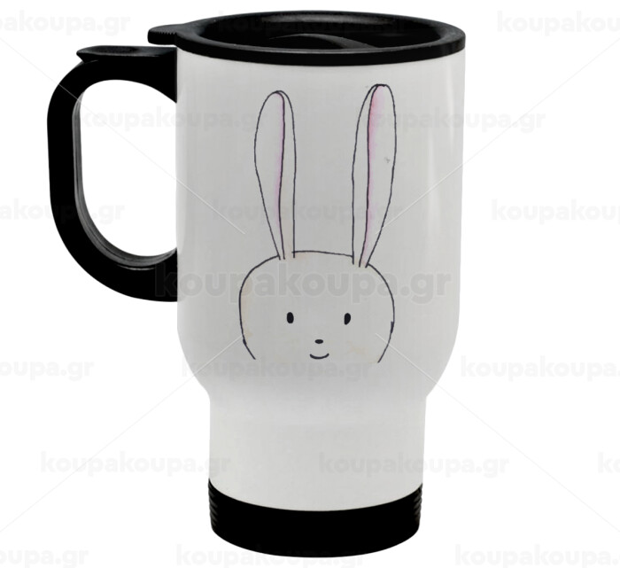 Ο λαγός του πάσχα, Κούπα ταξιδιού ανοξείδωτη με καπάκι, διπλού τοιχώματος (θερμό) λευκή 450ml