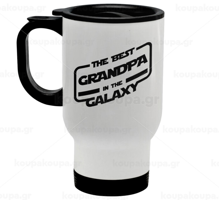 The Best GRANDPA in the Galaxy, Κούπα ταξιδιού ανοξείδωτη με καπάκι, διπλού τοιχώματος (θερμό) λευκή 450ml