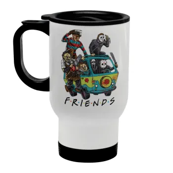 Halloween Friends Scooby Doo, Κούπα ταξιδιού ανοξείδωτη με καπάκι, διπλού τοιχώματος (θερμό) λευκή 450ml
