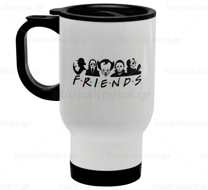 Halloween Friends, Κούπα ταξιδιού ανοξείδωτη με καπάκι, διπλού τοιχώματος (θερμό) λευκή 450ml