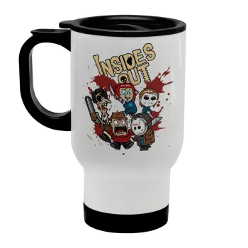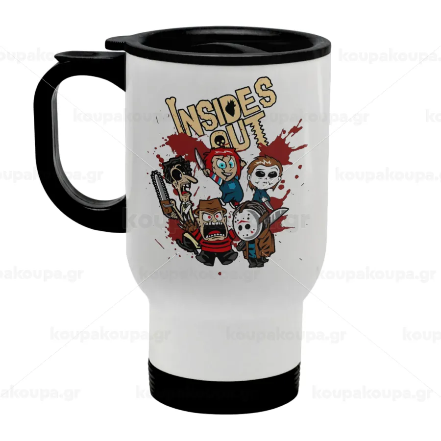 Halloween Inside out, Κούπα ταξιδιού ανοξείδωτη με καπάκι, διπλού τοιχώματος (θερμό) λευκή 450ml