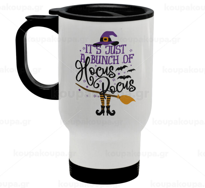 It's just a bunch of hocus pocus - halloween, Κούπα ταξιδιού ανοξείδωτη με καπάκι, διπλού τοιχώματος (θερμό) λευκή 450ml