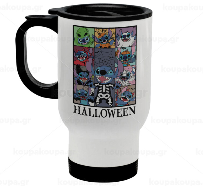 Stitch Halloween, Κούπα ταξιδιού ανοξείδωτη με καπάκι, διπλού τοιχώματος (θερμό) λευκή 450ml