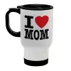 I LOVE MOM, Κούπα ταξιδιού ανοξείδωτη με καπάκι, διπλού τοιχώματος (θερμό) λευκή 450ml