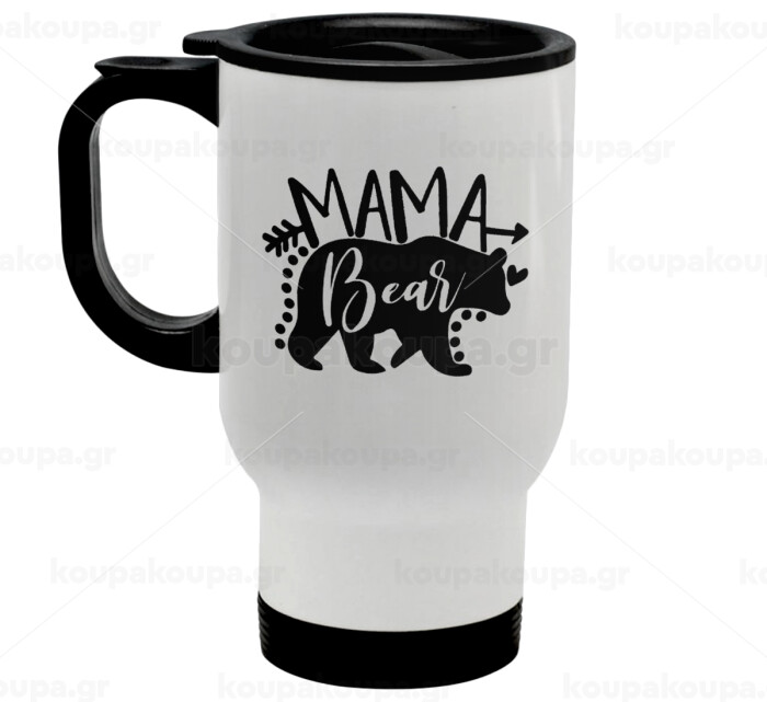 Mama Bear, Κούπα ταξιδιού ανοξείδωτη με καπάκι, διπλού τοιχώματος (θερμό) λευκή 450ml