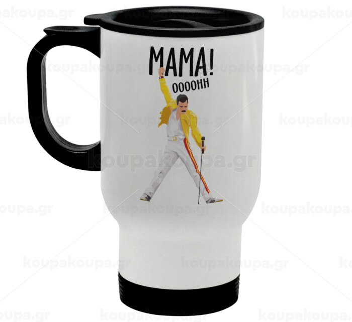 mama ooohh!, Κούπα ταξιδιού ανοξείδωτη με καπάκι, διπλού τοιχώματος (θερμό) λευκή 450ml