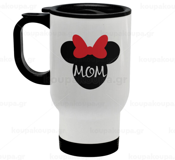 mini mom, Κούπα ταξιδιού ανοξείδωτη με καπάκι, διπλού τοιχώματος (θερμό) λευκή 450ml