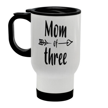 Mom of three, Κούπα ταξιδιού ανοξείδωτη με καπάκι, διπλού τοιχώματος (θερμό) λευκή 450ml
