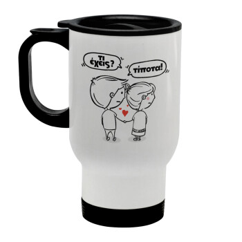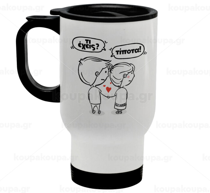 Τι έχεις? Τίποτα!, Κούπα ταξιδιού ανοξείδωτη με καπάκι, διπλού τοιχώματος (θερμό) λευκή 450ml