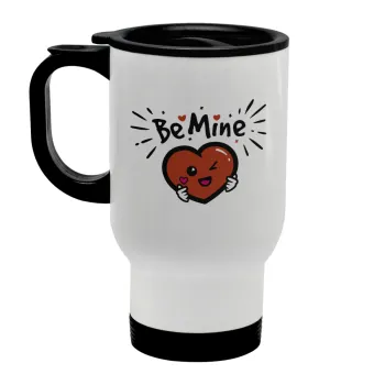 Be mine!, Κούπα ταξιδιού ανοξείδωτη με καπάκι, διπλού τοιχώματος (θερμό) λευκή 450ml