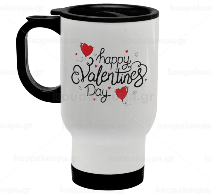 Happy Valentines Day!!!, Κούπα ταξιδιού ανοξείδωτη με καπάκι, διπλού τοιχώματος (θερμό) λευκή 450ml