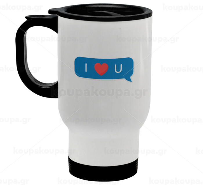I Love You text message, Κούπα ταξιδιού ανοξείδωτη με καπάκι, διπλού τοιχώματος (θερμό) λευκή 450ml