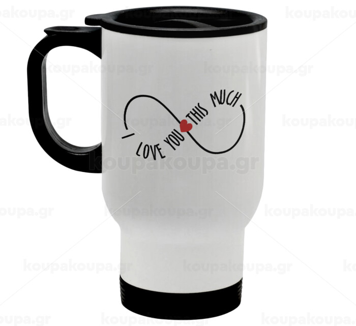 I Love you thisssss much (infinity), Κούπα ταξιδιού ανοξείδωτη με καπάκι, διπλού τοιχώματος (θερμό) λευκή 450ml