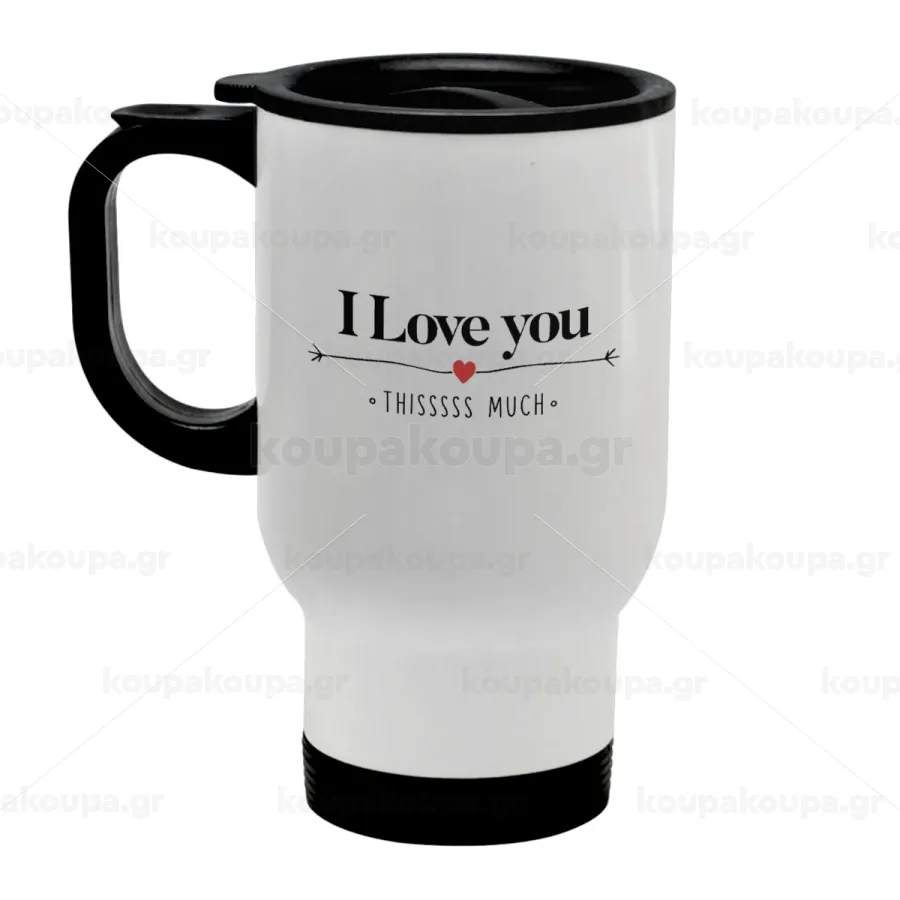 I Love you thisssss much, Κούπα ταξιδιού ανοξείδωτη με καπάκι, διπλού τοιχώματος (θερμό) λευκή 450ml