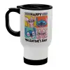 Lilo & Stitch Happy valentines day, Κούπα ταξιδιού ανοξείδωτη με καπάκι, διπλού τοιχώματος (θερμό) λευκή 450ml