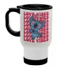 Lilo & Stitch Love vibes, Κούπα ταξιδιού ανοξείδωτη με καπάκι, διπλού τοιχώματος (θερμό) λευκή 450ml