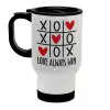 Love always win, Κούπα ταξιδιού ανοξείδωτη με καπάκι, διπλού τοιχώματος (θερμό) λευκή 450ml