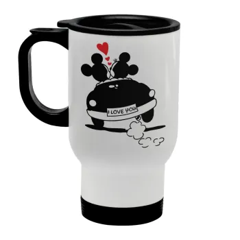 Love Car, Κούπα ταξιδιού ανοξείδωτη με καπάκι, διπλού τοιχώματος (θερμό) λευκή 450ml