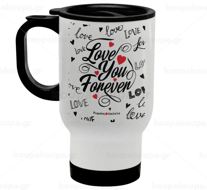 Love You Forever, Κούπα ταξιδιού ανοξείδωτη με καπάκι, διπλού τοιχώματος (θερμό) λευκή 450ml