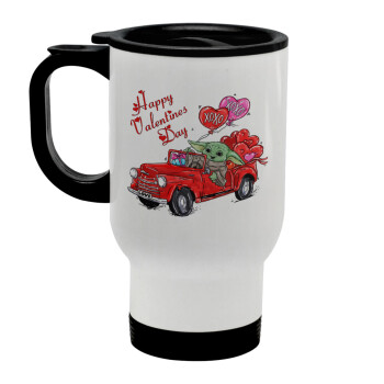 Yoda, happy valentines day (xoxo), Κούπα ταξιδιού ανοξείδωτη με καπάκι, διπλού τοιχώματος (θερμό) λευκή 450ml