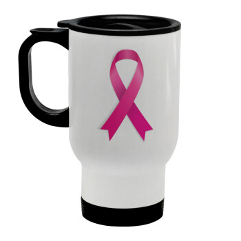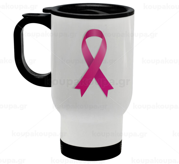 Παγκόσμια Ημέρα κατά του Καρκίνου, Κούπα ταξιδιού ανοξείδωτη με καπάκι, διπλού τοιχώματος (θερμό) λευκή 450ml