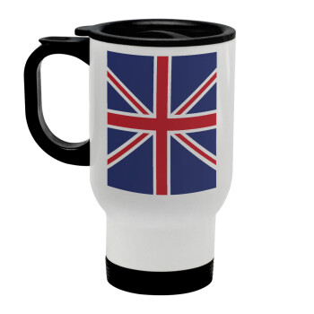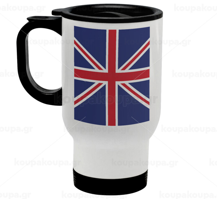 Σημαία Αγγλίας UK, Κούπα ταξιδιού ανοξείδωτη με καπάκι, διπλού τοιχώματος (θερμό) λευκή 450ml