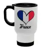 France flag, Κούπα ταξιδιού ανοξείδωτη με καπάκι, διπλού τοιχώματος (θερμό) λευκή 450ml