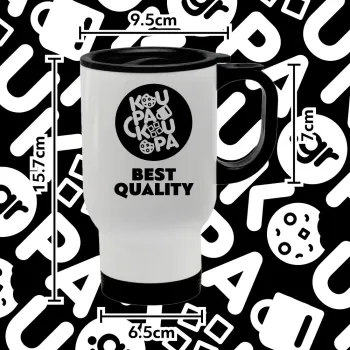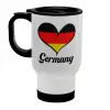 Germany flag, Κούπα ταξιδιού ανοξείδωτη με καπάκι, διπλού τοιχώματος (θερμό) λευκή 450ml