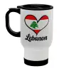 Lebanon flag, Κούπα ταξιδιού ανοξείδωτη με καπάκι, διπλού τοιχώματος (θερμό) λευκή 450ml