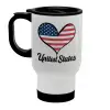 USA flag, Κούπα ταξιδιού ανοξείδωτη με καπάκι, διπλού τοιχώματος (θερμό) λευκή 450ml