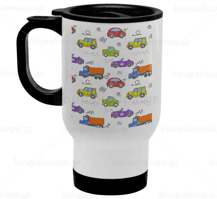 Αμαξάκια, Κούπα ταξιδιού ανοξείδωτη με καπάκι, διπλού τοιχώματος (θερμό) λευκή 450ml