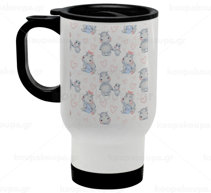 Ιπποπόταμος, Κούπα ταξιδιού ανοξείδωτη με καπάκι, διπλού τοιχώματος (θερμό) λευκή 450ml