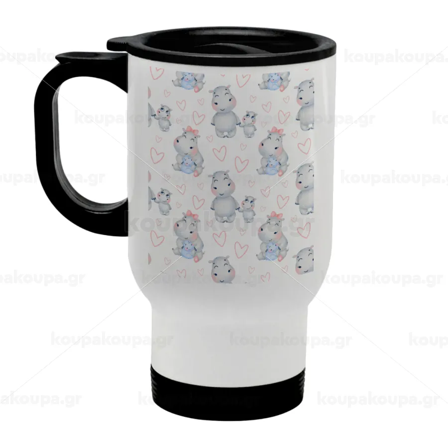 Ιπποπόταμος, Κούπα ταξιδιού ανοξείδωτη με καπάκι, διπλού τοιχώματος (θερμό) λευκή 450ml