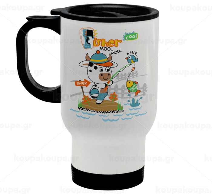 Ο μικρός ψαράς, Κούπα ταξιδιού ανοξείδωτη με καπάκι, διπλού τοιχώματος (θερμό) λευκή 450ml