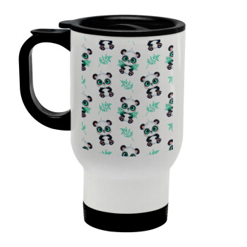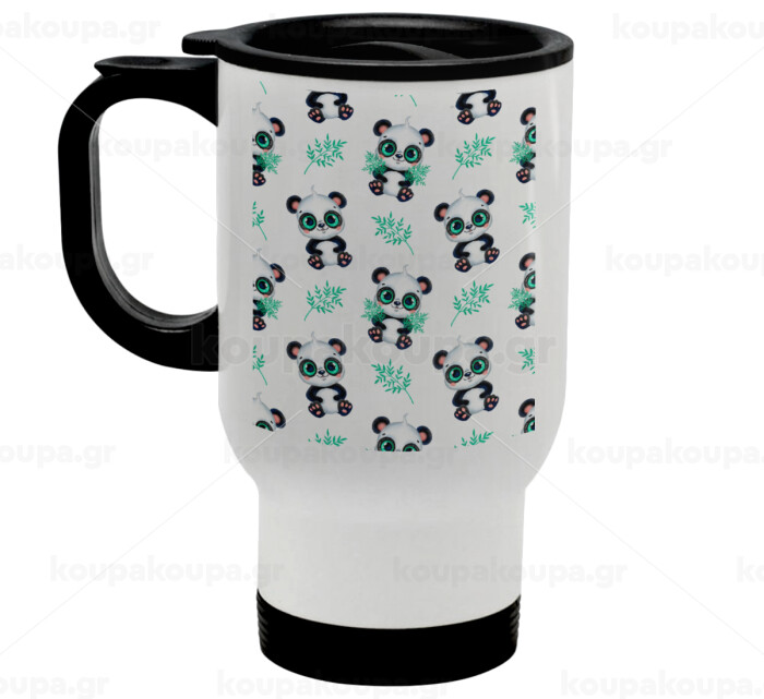 Panda, Κούπα ταξιδιού ανοξείδωτη με καπάκι, διπλού τοιχώματος (θερμό) λευκή 450ml