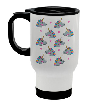 Unicorn, Κούπα ταξιδιού ανοξείδωτη με καπάκι, διπλού τοιχώματος (θερμό) λευκή 450ml