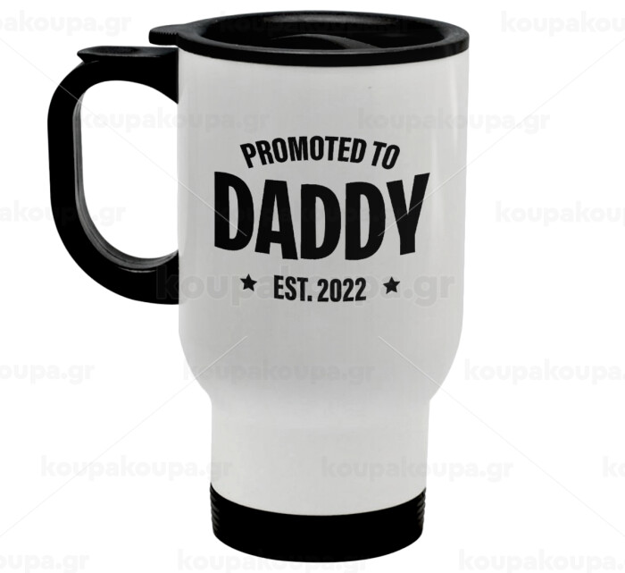Promoted to Daddy, Κούπα ταξιδιού ανοξείδωτη με καπάκι, διπλού τοιχώματος (θερμό) λευκή 450ml