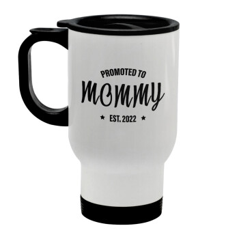 Promoted to Mommy, Κούπα ταξιδιού ανοξείδωτη με καπάκι, διπλού τοιχώματος (θερμό) λευκή 450ml