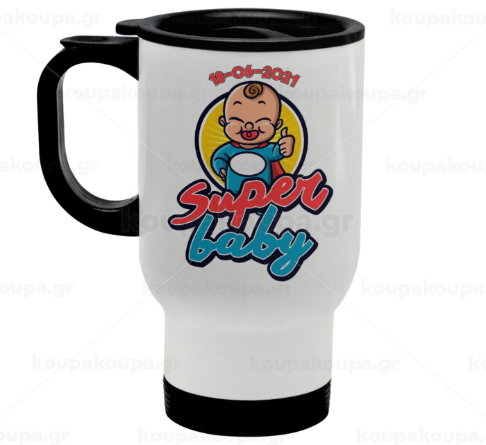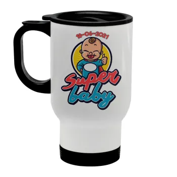 Super baby., Κούπα ταξιδιού ανοξείδωτη με καπάκι, διπλού τοιχώματος (θερμό) λευκή 450ml